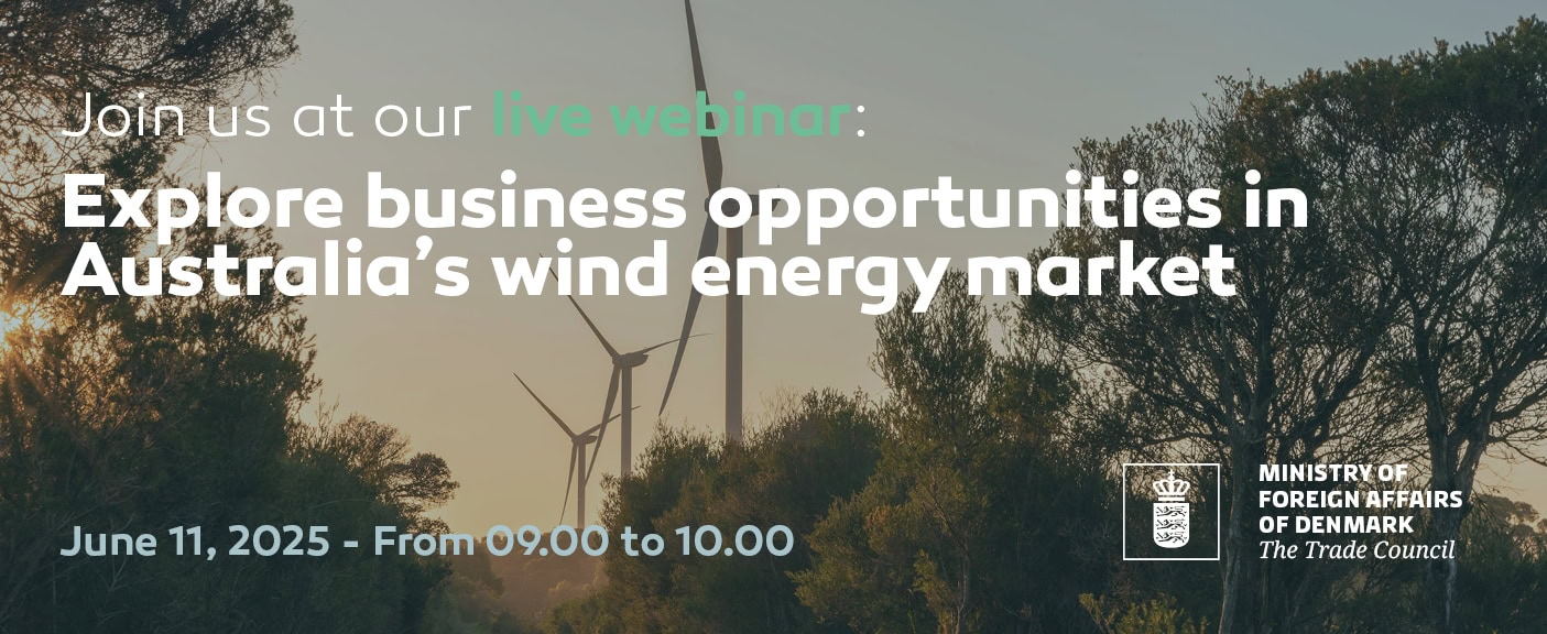 Join our free webinar to get up-to-date insights on where the Australian wind energy sector is headed, what to expect from upcoming tenders, and how Danish solutions are already making an impact.