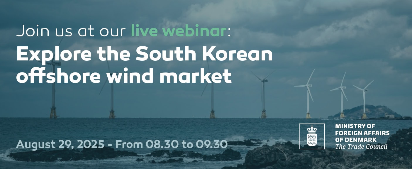 Join the Trade Council in Seoul and Danish Energy Export for a free morning briefing on South Korea’s offshore wind market – one of Asia’s most ambitious and fast-evolving clean energy frontiers.